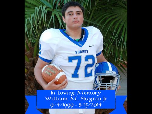 Tragically we lost our son William on August 13th 2014 while he was practicing football with his high school team in north Florida. He was 14 years young. While this has been a very devastating and difficult loss for our family, our desire is to honor William's life through this scholarship fund bearing his name: The William M. Shogran Jr Scholarship Fund.